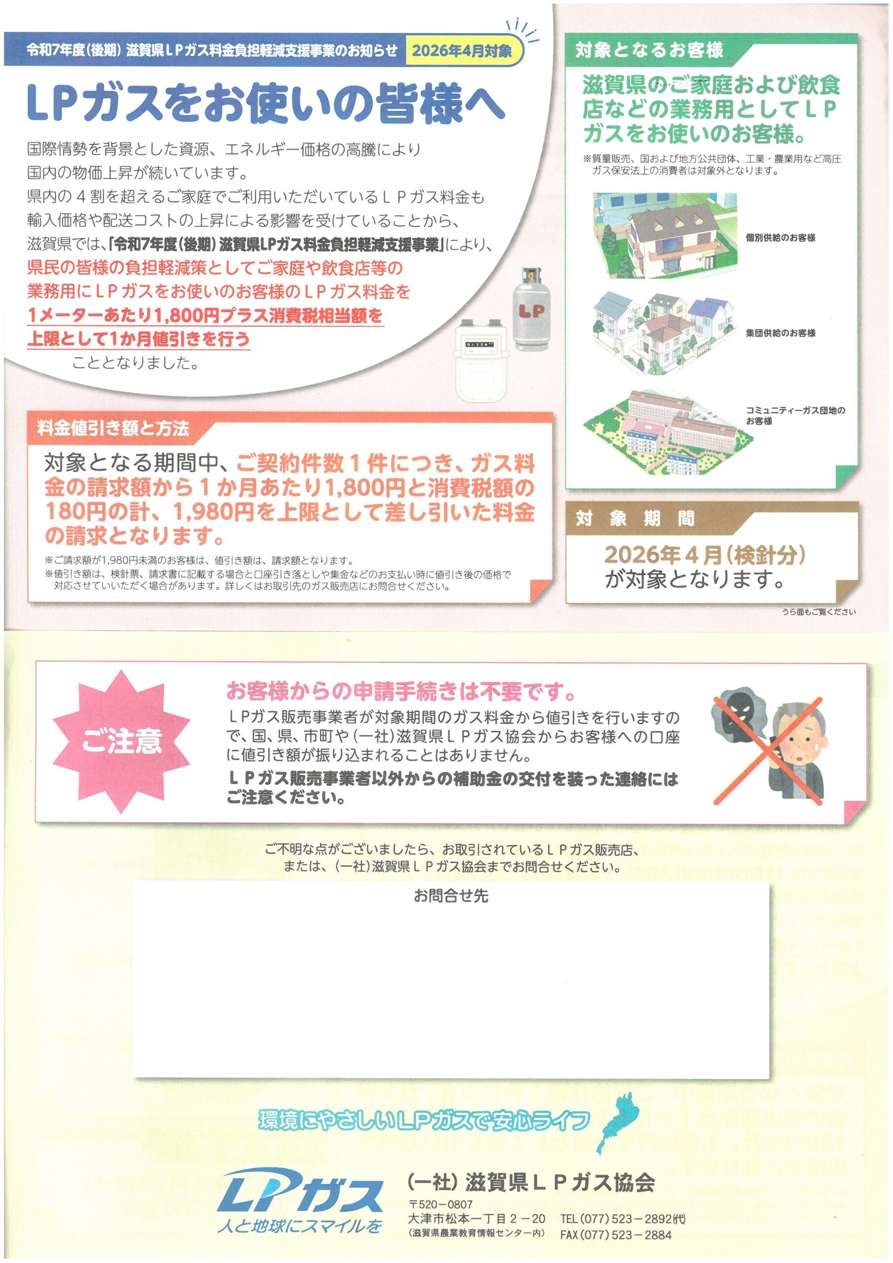対象:LPガスを利用する一般世帯、飲食店などの業務用。