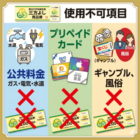 国の規定や商品券のルールにより、以下の支払いにはご利用いただけません。